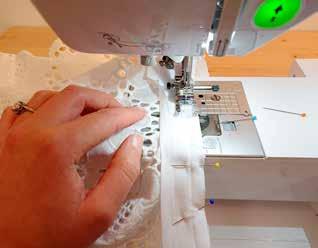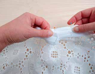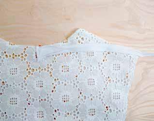 Le biais est un ruban de tissu coupé dans la diagonale du tissu qui est très extensible (voir p. 21). Il est donc parfait pour finir une encolure arrondie.