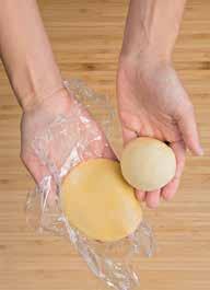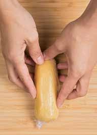 Ajoutez ensuite la moitié de l’œuf battu. Fouettez, puis incorporez l’autre moitié. Tamisez la farine avec la levure. Incorporez-les petit à petit dans le saladier à l’aide d’une spatule jusqu’à l’obtention d’une pâte homogène. Déposez la pâte obtenue sur un film alimentaire. Formez un cylindre, filmez-le et laissez-le reposer au réfrigérateur pendant 1 heure.