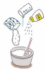 Dans un bol, mélangez la farine de riz gluant, le sucre et 10 cl d’eau.