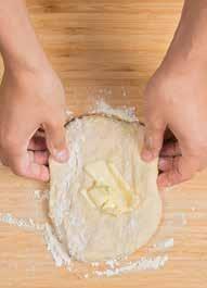 Coupez le beurre en petits dés et disposez-les sur la pâte étalée. Recouvrez le beurre en roulant la pâte sur elle-même et recommencez à pétrir. Continuez à pétrir pendant 10 minutes. Formez une boule avec la pâte et déposez-la dans un saladier. Recouvrez d’un torchon et laissez lever pendant 1 heure dans un endroit tempéré, à l’abri des courants d’air, dans le four éteint, par exemple.