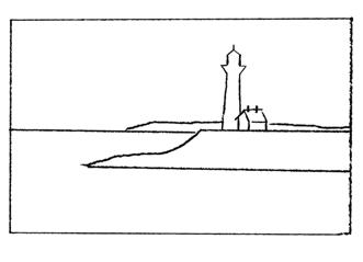 J’ai décidé de ne pas représenter le bloc rocheux entre les fleurs et le phare pour faciliter la lisibilité. Je décide d’ajouter un mince bloc rocheux à l’arrière-plan pour garder trois plans.