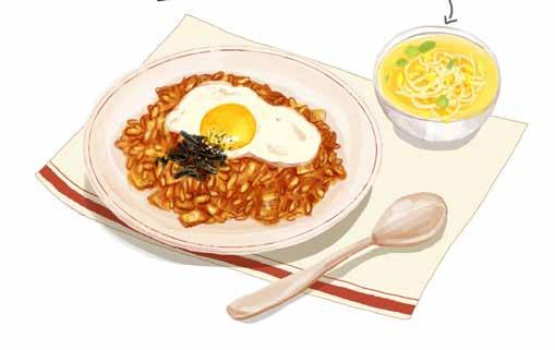Pour les Coréens, ce plat est à la fois très banal et toujours délicieux. On peut y ajouter en option de la viande de porc, du bacon ou, la dernière tendance, du fromage fondu. Toutes les sortes de kimchi peuvent être utilisées. Accompagné d’une soupe de pousses de soja, c’est l’un des déjeuners préférés des Coréens.