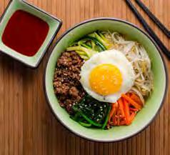 Les garnitures peuvent varier et apportent de nombreuses couleurs. Avec beaucoup de légumes et peu de viande, le bibimbap est en effet un plat parfaitement équilibré.
