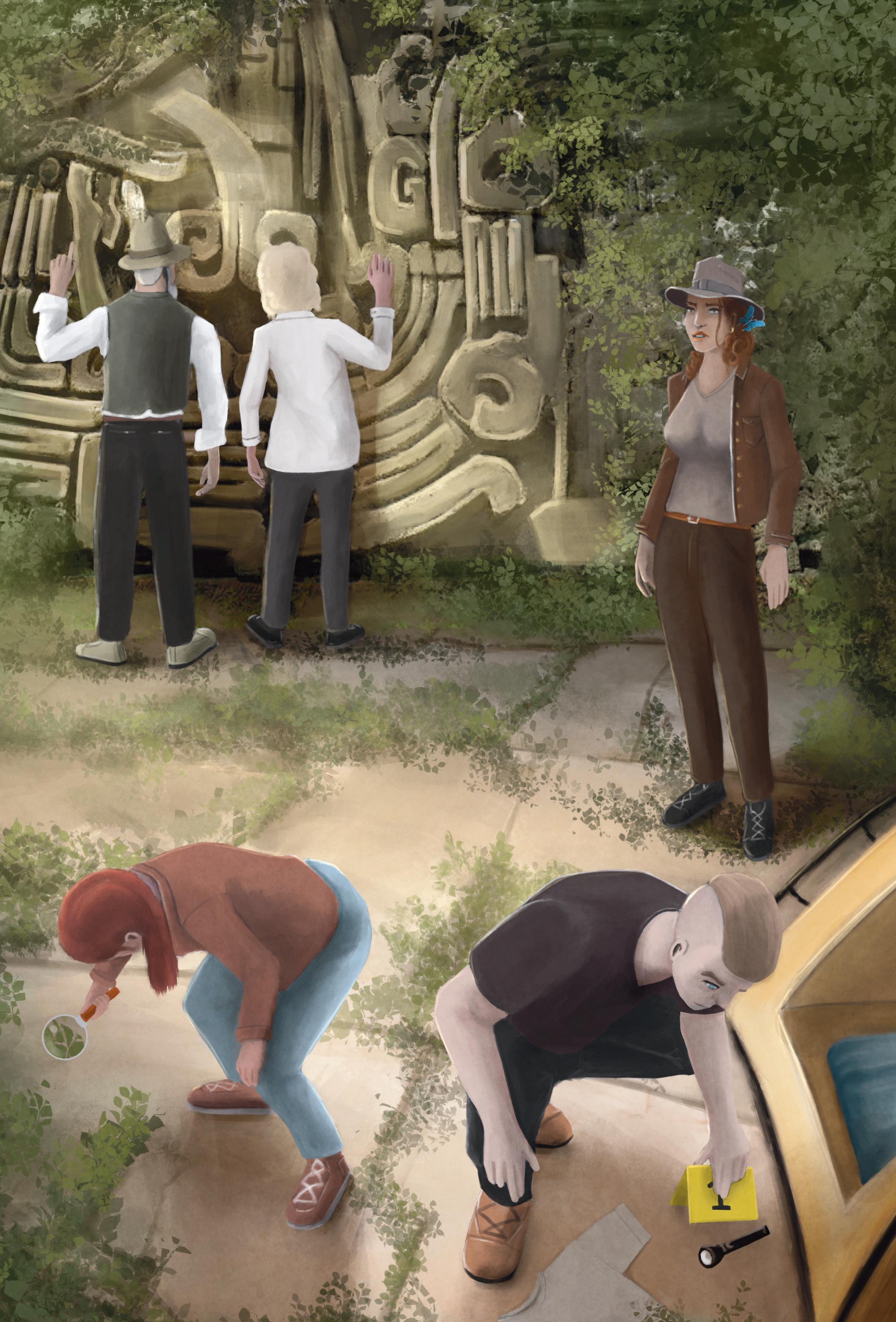 Il faut trouver des indices, le plan du site va vous aider à mieux vous repérer. La cité se trouvant sous terre, les scientifiques ont utilisé un magnétomètre, muni d’un géo-radar, qui leur a permis de cartographier la zone. Vous supposez que la salle du trésor se trouve tout au fond des ruines. Ce plan vous permet de démarrer l’enquête en reconstituant le parcours de la victime et de son tueur.