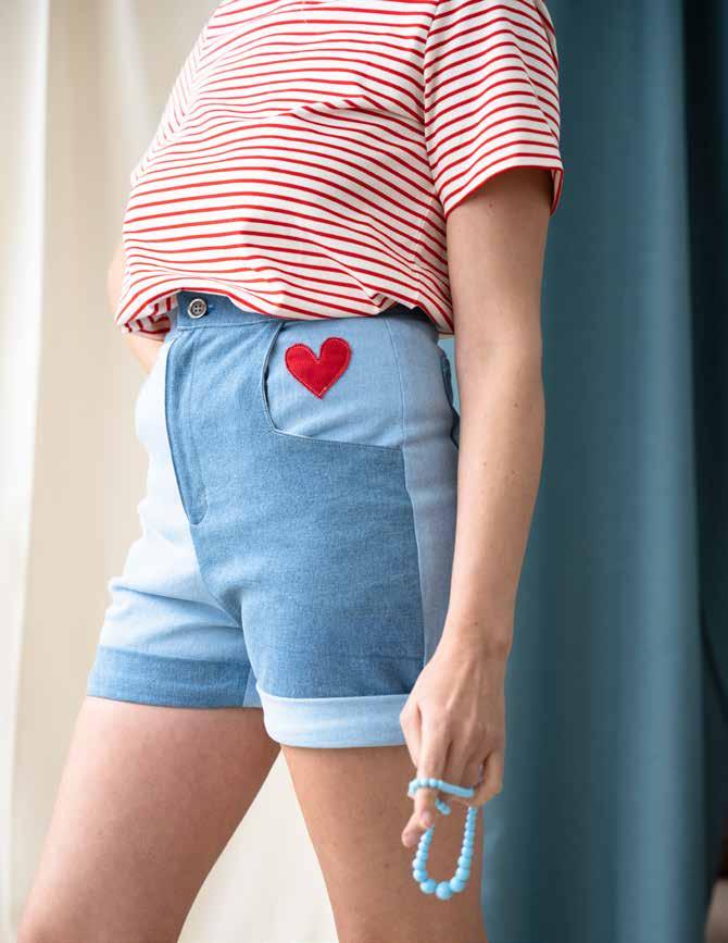 de short que l’on peut réaliser en recyclant deux vieux jeans usés. Ce modèle bigoût et ses empiècements en forme de cœur ont tout pour vous faire craquer !