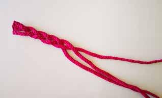 2. Maintenir trois brins ensemble par quelques points à la main puis réaliser une tresse d’environ 60/65/70/75/80/85 cm de long, en fonction de la taille choisie (de la taille 34 à 44). Finir la tresse en maintenant les brins ensemble par quelques points à la main. Réaliser deux autres tresses à l’identique.