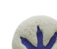 2. Appuie tes figurines dans la pâte, de façon à laisser une empreinte dessus : une grosse patte bien à plat, un profil de dinosaure…