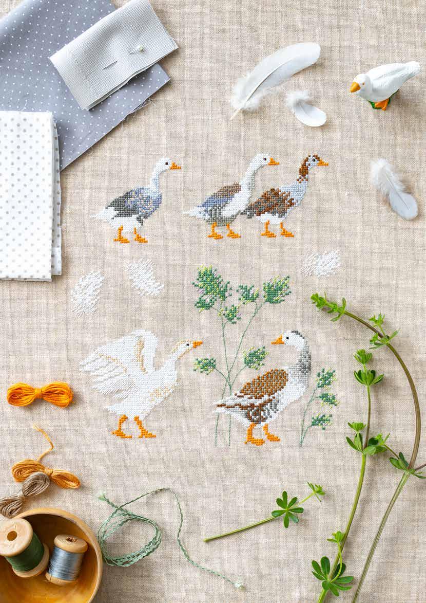 Très sociable, l’oie n’est heureuse que lorsqu’elle est en groupe ! Prenez donc garde à ne pas trop la séparer de ses congénères lorsque vous broderez cette grille…