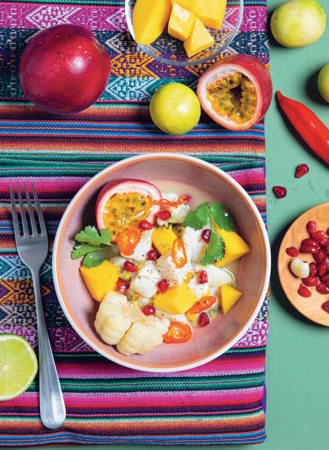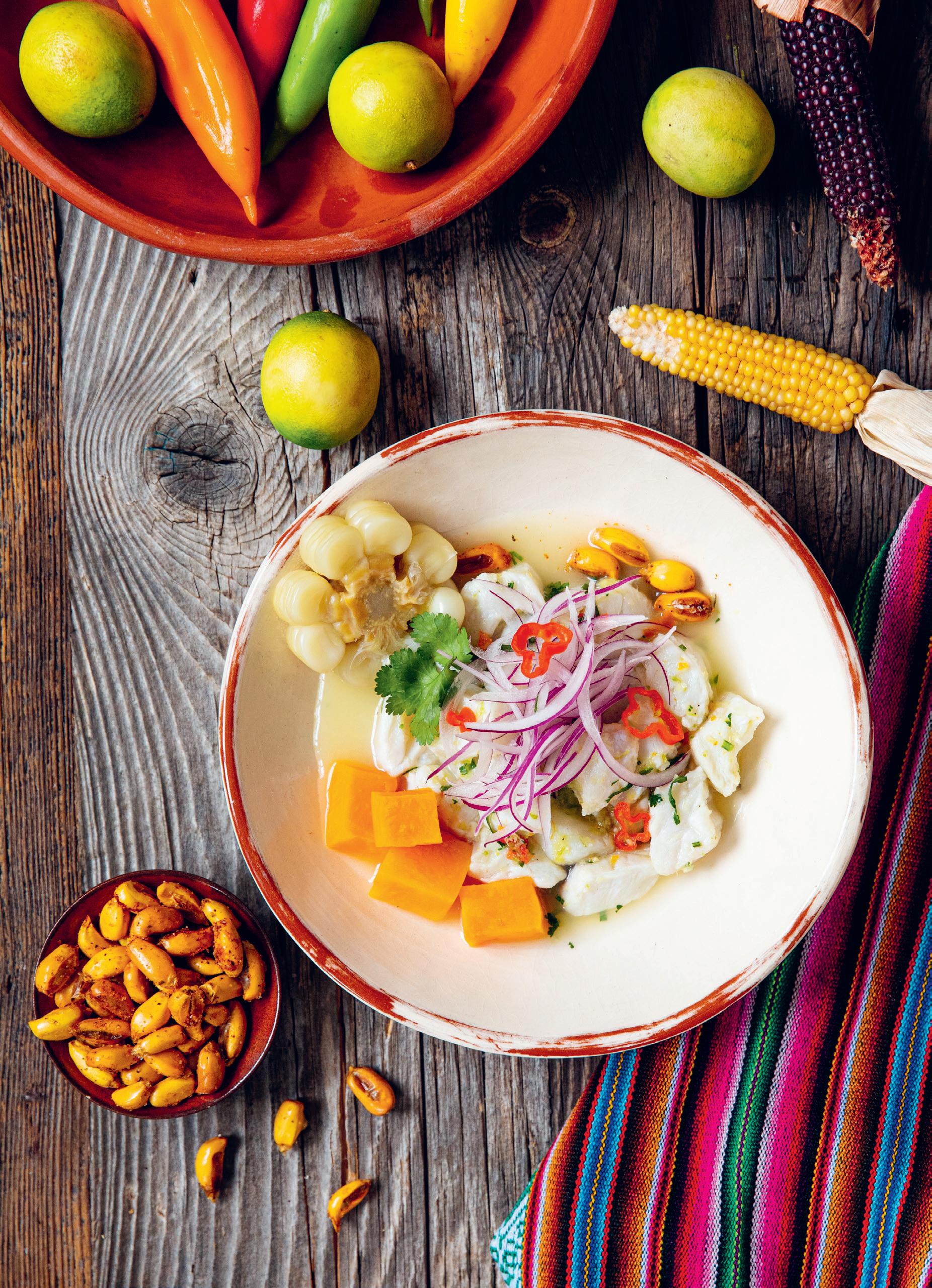 3 SOMMAIRE Lourdes Pluvinage 5 La cuisine péruvienne 7 Les produits péruviens 11 Les ingrédients 12 LES BASES La pomme de terre 20 Le riz 20 Le maïs 22 Choclo 22 Cancha 22 La patate douce 22 LES SAUCES Sauce huacatay 26 Salsa criolla 26 La leche de tigre 27 Sauce rocoto 30 LES PÂTES DE PIMENTS Pâte de piment rocoto 32 Pâte de piments jaunes 32 Pâte de piments panca 33 Pâte de piments mirasol 33 CEVICHES Ceviche clásico 38 Ceviche nikkei 40 Ceviche carretillero 42 Ceviche exotique 44 Ceviche tiède de conchas 46 Tiradito clásico 48 Tiradito con ají amarillo 48 Tiradito con rocoto 49 Tiradito nikkei 49 ENTRÉES ET SOUPES Guacamole 54 Terrine de pommes de terre au thon 56 Piments farcis 58 Salade de fromage 60 Poulpe grillé 62 Salade de quinoa 64 Poulpe à la sauce aux olives 68 Pommes de terre, sauce huancaina 70 Pétoncles au parmesan 72 Soupe minute 74 Soupe andine 74 Velouté de crème de quinoa 75 PLATS Poulet sauce au piment jaune 80 Cœur de rumsteck sauté 82 Agneau mariné 84 Riz au poulet 86 Ceviche de magret de canard 88 Rôti de bœuf au piment 92 Rôti de porc au four 94 Poisson au lait de coco 96 Poisson à l’étouffée 98 Gratin de quinoa 102 Haricots blancs criollos 104 STREET FOOD Brochettes de cœur de bœuf 108 Empanadas à la viande de bœuf 110 Pâtés de farine de maïs 114 Pommes de terre farcies 118 DESSERTS ET BOISSONS Biscuits fourrés à la confiture de lait 122 Compote de maïs violet 124 Délice de quinoa 126 Panna cotta de mangue et passion 128 Gâteau roulé à la confiture de lait 130 Pisco sour 132 Chicha morada 134 Maracuya 136 Chilcano 136 Bonnes adresses 138