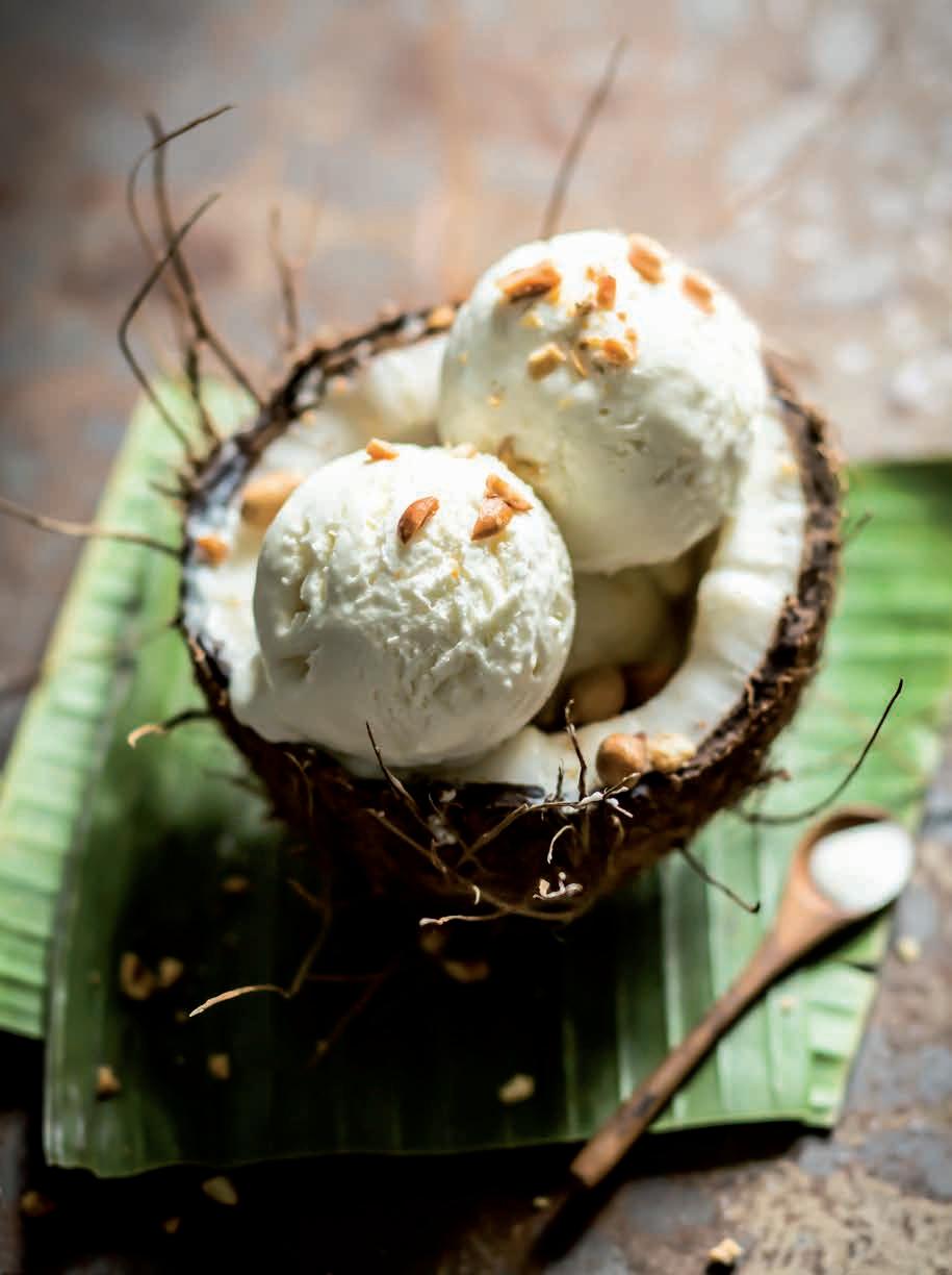 Faites comme en Thaïlande et servez les boules de glace coco garnies de cacahuètes.