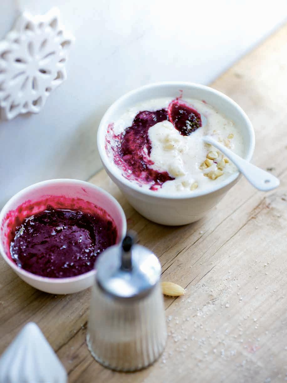 En dernière étape, cachez l’amande entière dans le riz. Ce dessert s’accompagne traditionnellement d’une sauce tiède aux cerises.