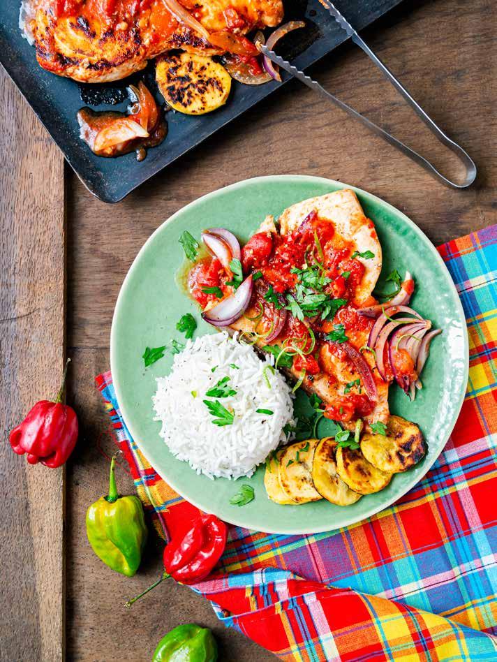 Moules au chorizo .......................................... 128 Crevettes à la portugaise ............................... 130 Sardines grillées en feuilles de vigne ............ 132 Dorades à la chermoula ..................................134 Maigres en feuille de bananier....................... 136 Crevettes au tamarin ...................................... 138 Coques à la bière vietnamienne .................... 140 Calamars sautés au saté .................................144 Teppanyaki de crustacés ................................ 146 Palourdes au ponzu ........................................ 148 Tataki de saumon 150 Riz sautés ....................................................... 153 Filets de dorade, sauce à la mangue ............. 156 Bars, sauce chien ........................................... 158 Touffe d’espadon au citron vert ..................... 160 Brochettes de gambas-ananas au rhum ........ 162 Poulpe mariné au piment ............................... 166 Espadon, sauce salsa-ananas ........................ 168 Légumes Légumes méditerranéens ...............................172 Chou-fleur aux épices .....................................176 Légumes chop suey......................................... 178 Buchimgae (galette coréenne de légumes) .................................................. 180 Épis de maïs grillés, sauce chili 182 Pains, fromages et desserts Manouché zaatar ............................................ 186 Chèvre frais à l’estragon ................................ 188 Feta rôtie aux tomates ................................... 190 Brochettes d’halloumi au miel et légumes .... 194 Abricots aux amandes .................................... 196 Pommes à la cannelle .................................... 196 Ananas à la plancha ....................................... 198 Bananes au rhum .......................................... 200 Index ...........................................................204 Les bonnes adresses de Loïc ..................................................... 207 3