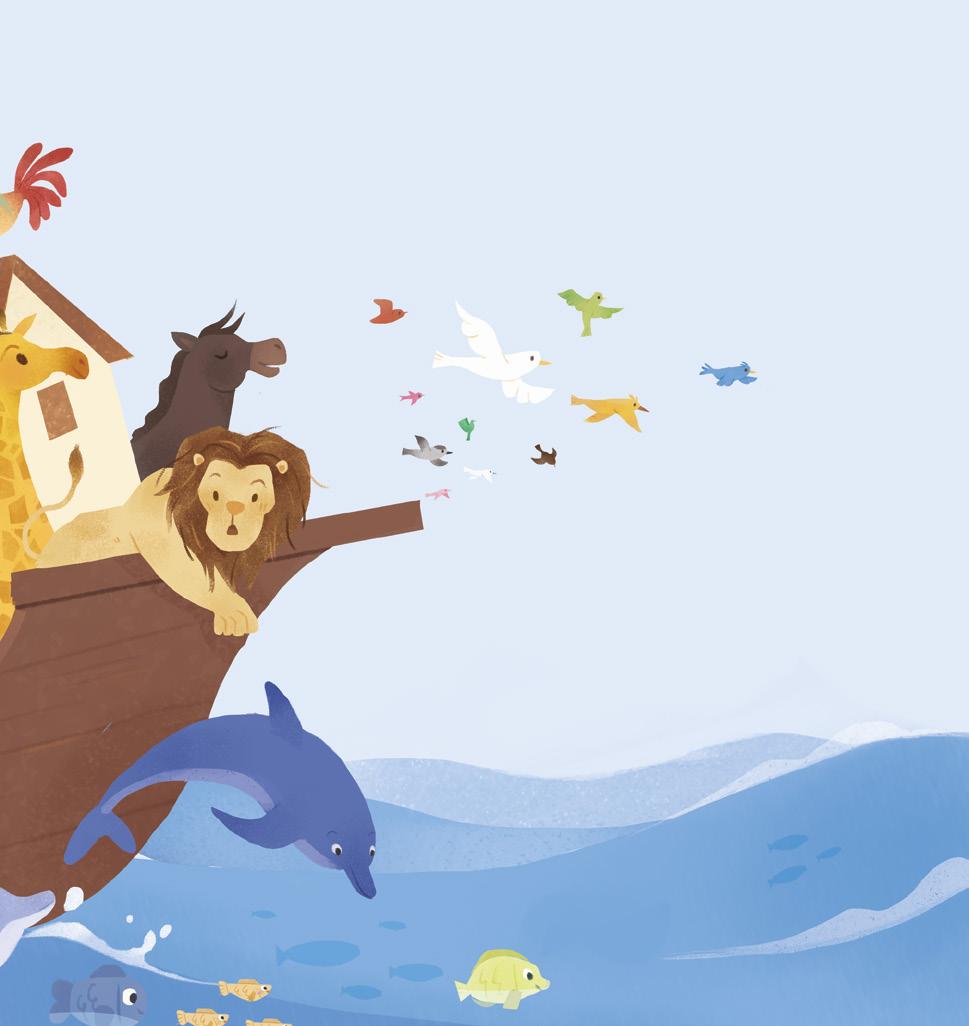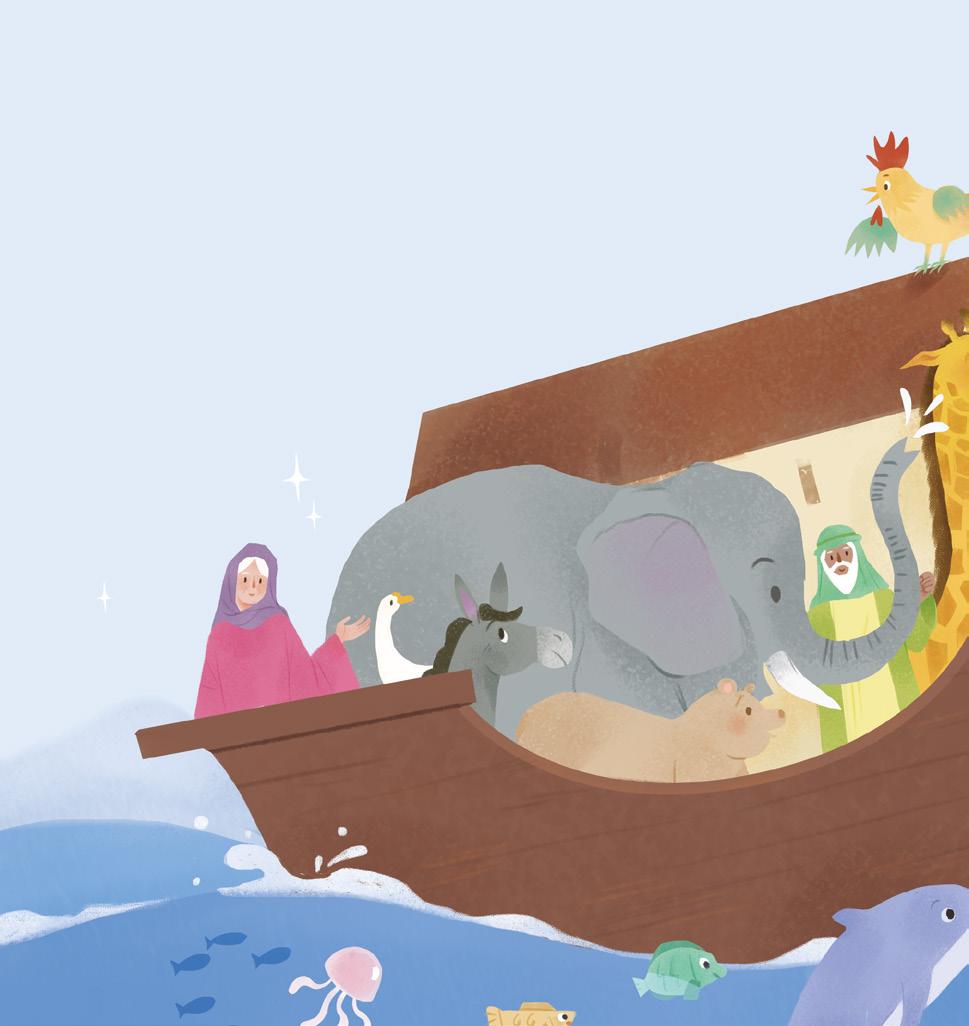 Quand arrive la tempête, Noé est bien à l’abri dans son bateau, avec sa famille et tous les animaux. Et Dieu veille sur eux tous.