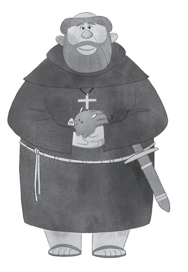 Frère Sixte, soldat dans une autre vie, désormais moine, prie le plus souvent et guerroie encore de temps en temps. Il a gardé un caractère affirmé et grogne aussi facilement qu’il donne des coups d’épée.