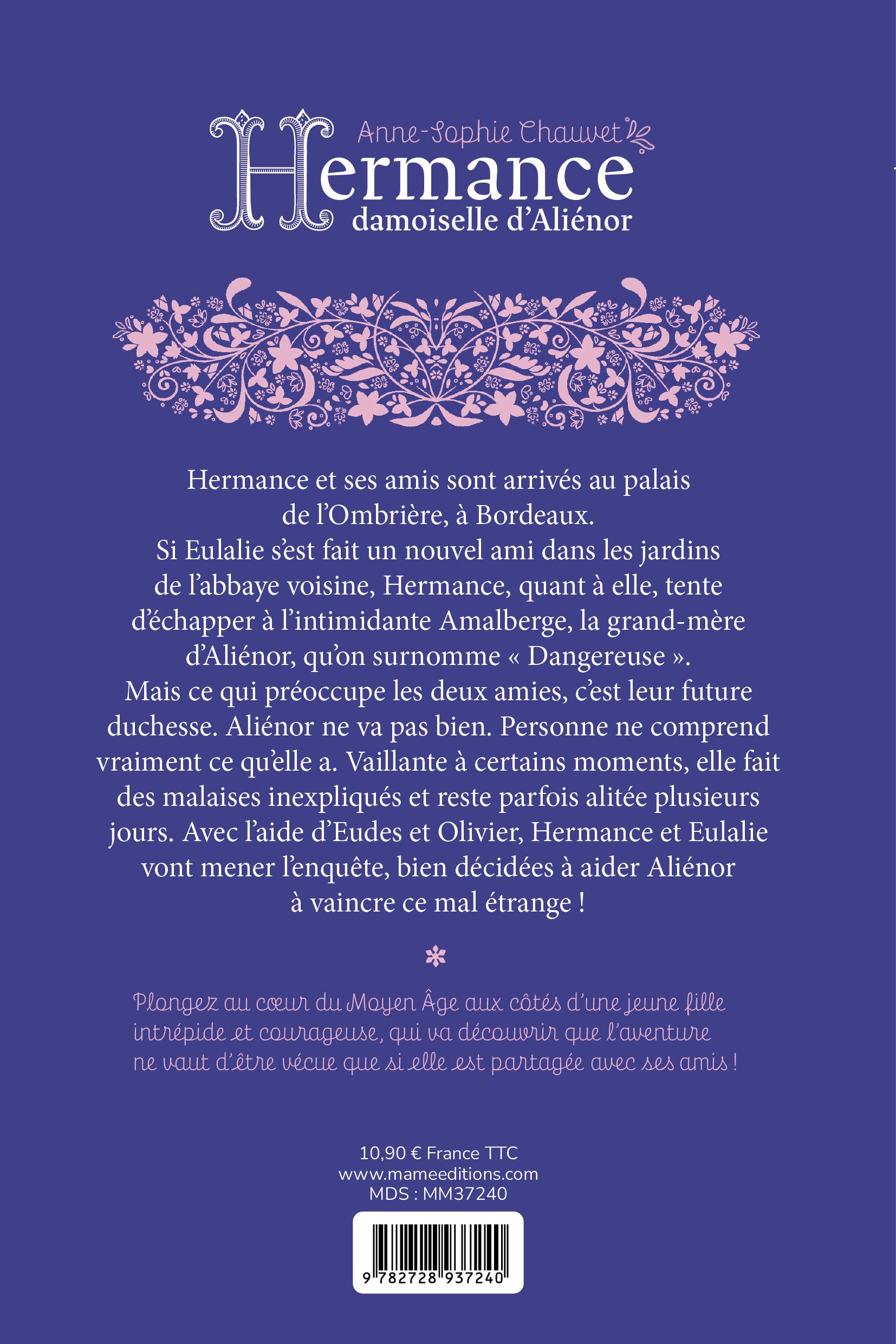 Au début du premier tome, Hermance a été appelée à la cour d’Aquitaine pour devenir une des suivantes de la future duchesse, Aliénor. Mais, sur la route, Hermance, accompagnée de sa sœur de lait – et servante – Eulalie, est victime d’un accident.