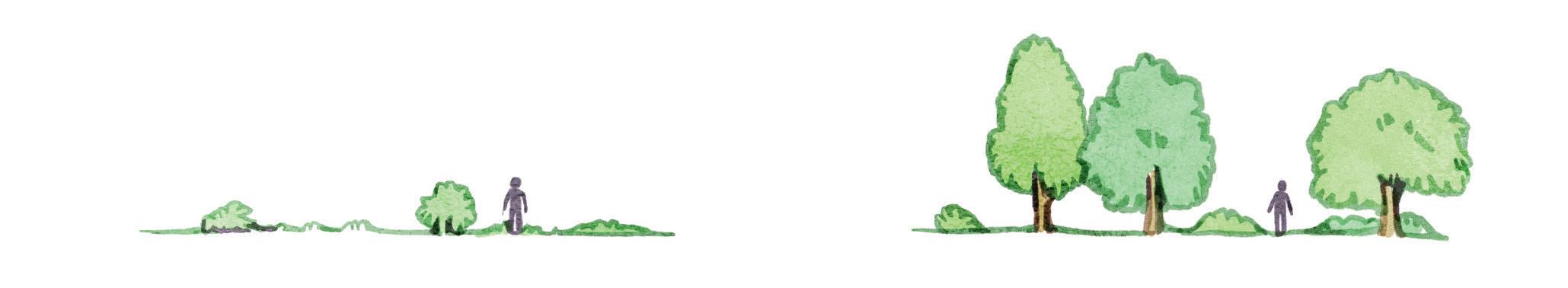 En forêt, au moins 15 années sont nécessaires à la réalisation d’un paysage offrant la sensation de se promener dans un sous-bois.