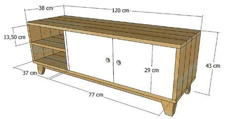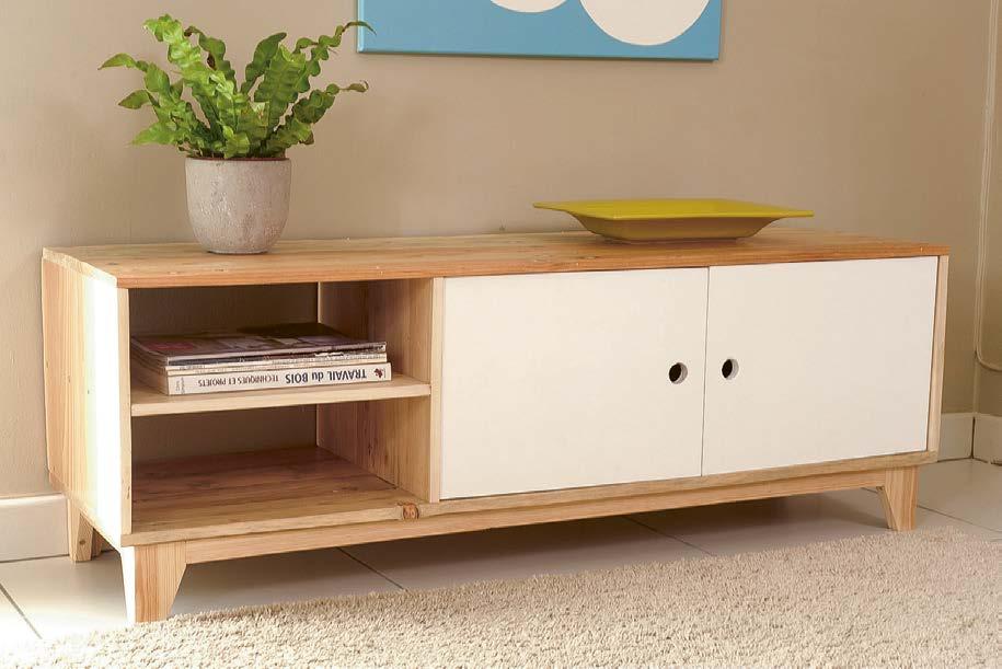 Fabrication : 5 jours | Coût : 45 € Niveau : difficile Retrouvez toute la sobriété du style nordique avec ce meuble TV tout en bois et en partie peint en blanc. Pratique, il vous permettra de ranger tous vos équipements avec élégance. Matériel • 15 planches de palette mesurant 120 × 9,5 × 2 cm • 2 planches de contreplaqué mesurant 38,3 × 28,8 × 2 cm • 2 planches de médium mesurant 37,5 × 29 × 0,5 cm • 40 vis à bois 4 × 50 mm • 16 vis à bois 4 × 45 mm • 24 vis à bois 4 × 25 mm • 149 vis à bois 4 × 30 mm • 24 tourillons de 8 mm de diamètre • 16 rondelles de diamètre intérieur 6 mm et extérieur 18 mm • 4 charnières pivots universelles en acier pour meuble 70 × 9 mm • Du vernis incolore satiné • Du vernis incolore mat