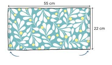 2. Découpez un rectangle de 55 × 22 cm. Repliez le haut sur 1,5 cm par deux fois pour former un ourlet1. Puis, cousez au bas de celui-ci. Réalisez le même ourlet sur l’autre extrémité du rectangle.