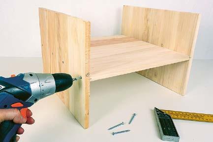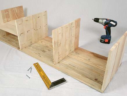 Pour fabriquer les panneaux, réutilisez la méthode du vissage en biais détaillée pp. 21-22. Utilisez des vis 4 × 30 mm.