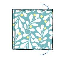 3. Liez en deux le rectangle de tissu (les pliures des ourlets tournées vers l’intérieur) et cousez à 3 mm du bord de chaque côté en vous arrêtant au ras de l’ourlet1. Coupez les fils.