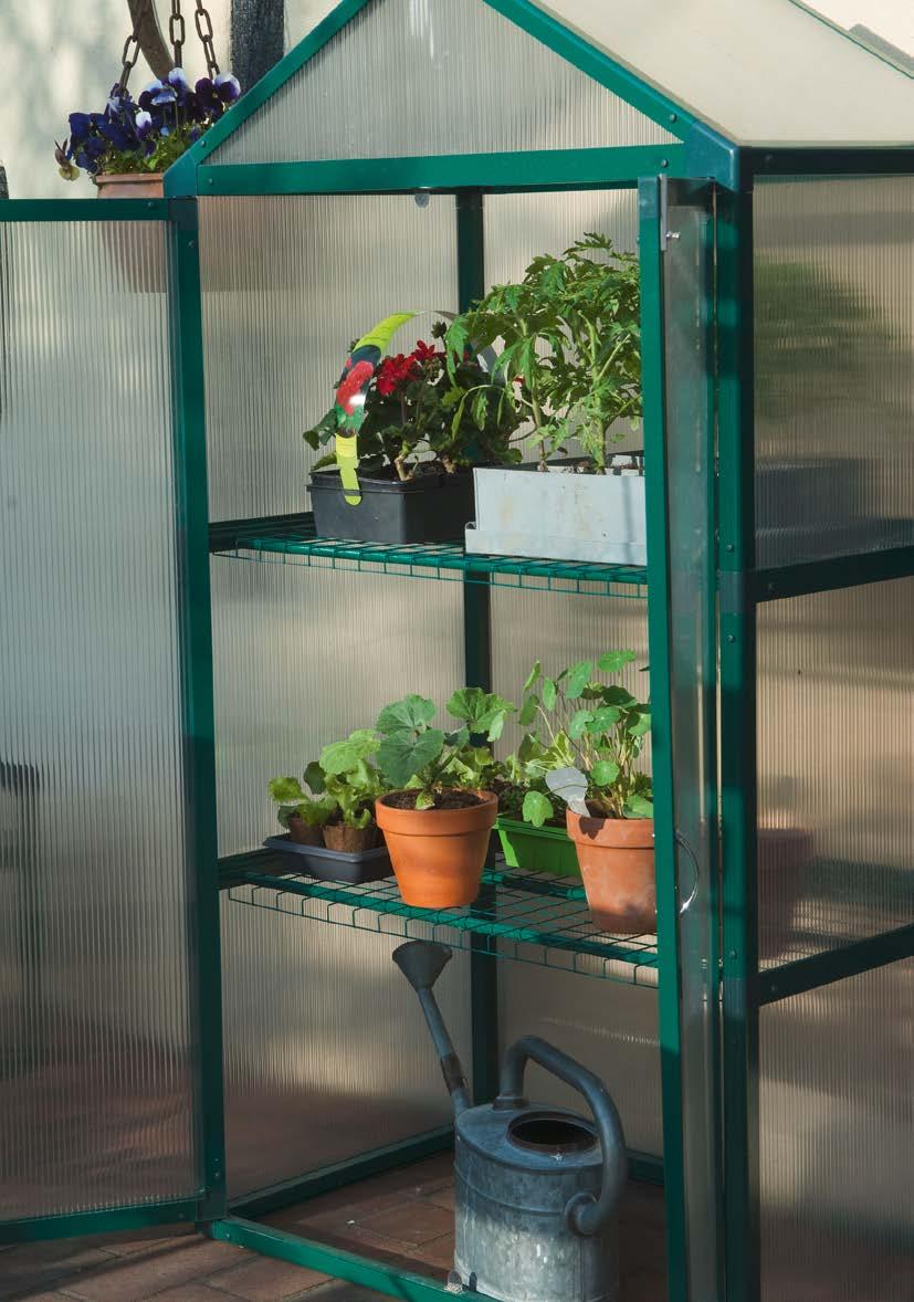 Son faible encombrement lui permet de trouver sa place très facilement sur un balcon, un coin de terrasse ou un petit jardinet. Son faible coût d’achat permet de débuter, de se former à la gestion d’une serre.