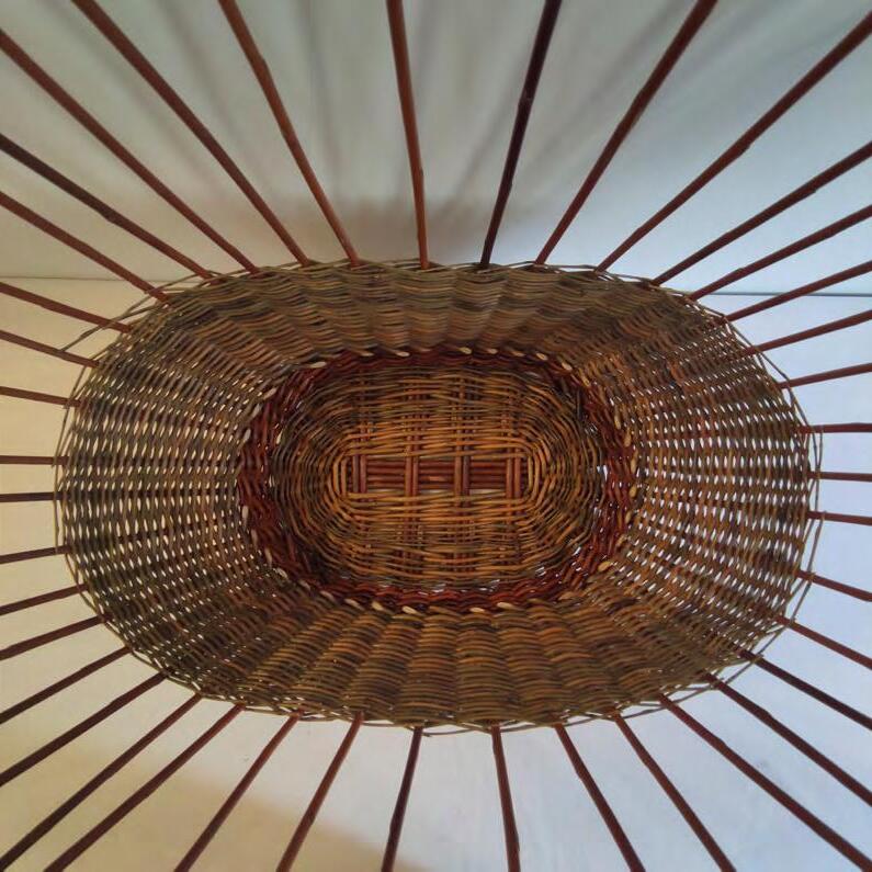 Le fond doit toujours être légèrement bombé et bien serré. Il faut donc travailler cela tout au long du tressage. Les bâtons de croisée sont assez forts pour ne pas se faire déformer par les brins de tressage du fond.