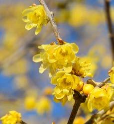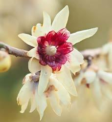 Le chimonanthe est un arbuste au port raide et compact, de 2 à 3 m de haut. originaire de Chine, il s’acclimate parfaitement en France et déploie, en plein hiver, de curieuses fleurs en forme de clochettes pendantes, aux pétales jaune soufre, ponctués de pourpre. La floraison n’intervient que lorsque l’arbuste est âgé d’au moins deux ans. à la fin de la floraison, naissent les feuilles, longues, d’un vert luisant et rugueuses sur le dessus.
