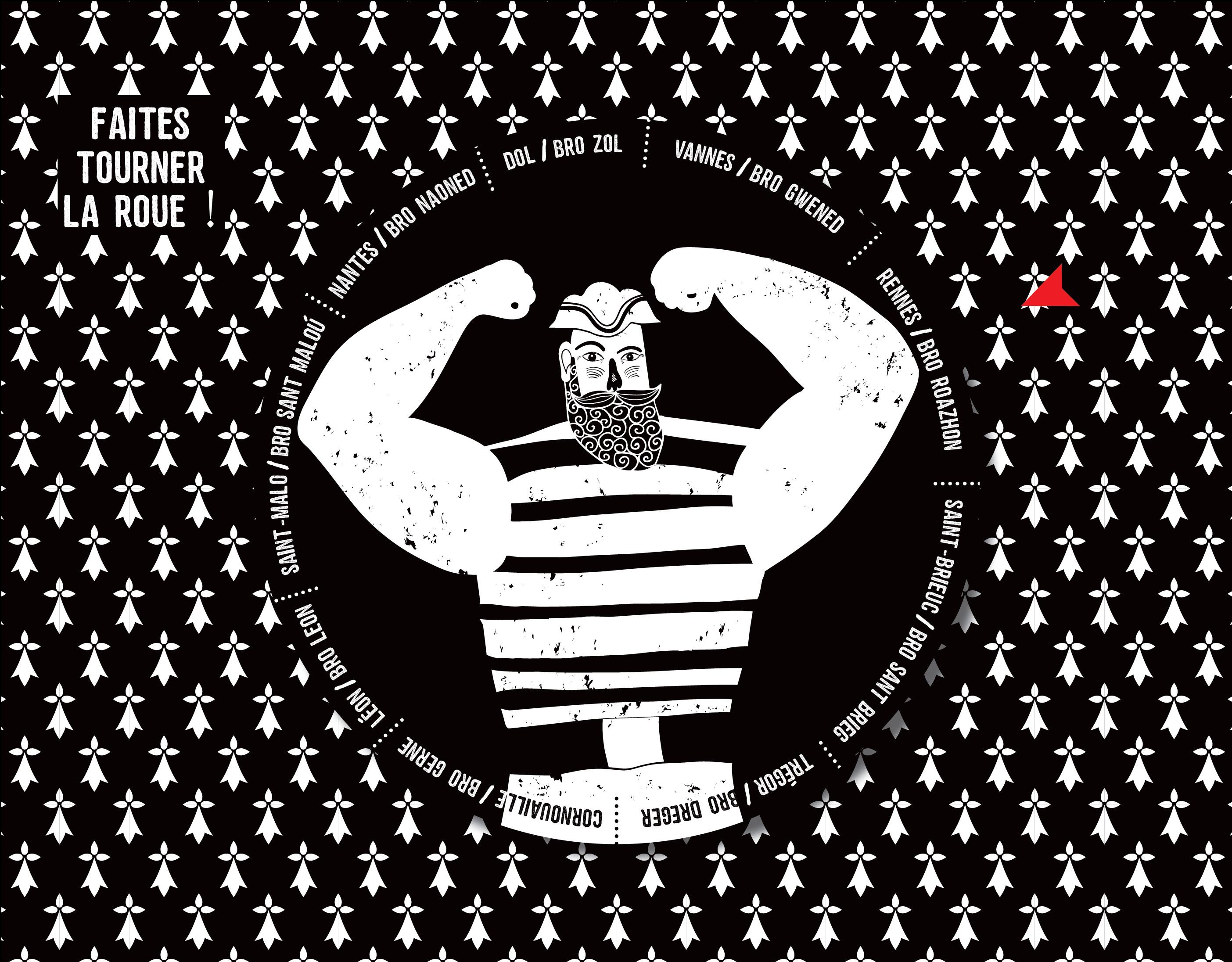 Faites tourner la roue pour choisir le livret correspondant à l’un des neuf évêchés historiques de la Bretagne et répondez aux questions qu’il contient.