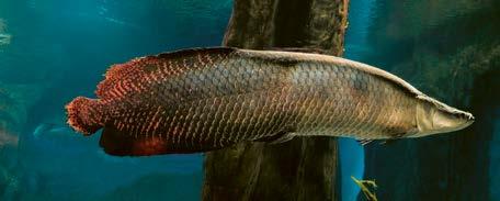 C’est l’arapaïma géant (Arapaima gigas). Ce poisson d’eau douce originaire d’Amazonie est également appelé « piracuru ». Il peut mesurer plus de 2 m de longueur et peser jusqu’à 200 kg. Ses écailles, qui résistent aux morsures des piranhas, atteignent parfois 15 cm de diamètre. Les populations amazoniennes les utilisent pour confectionner des bijoux, des objets décoratifs, voire des limes à ongles (une partie de ses écailles est rugueuse).