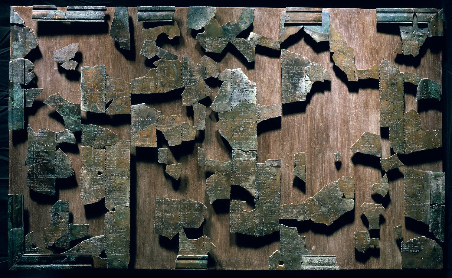 Le calendrier, recomposé aux deux tiers grâce aux 149 fragments en bronze retrouvés, a la forme d’une plaque rectangulaire de 1,48 mètre sur 0,80 mètre.