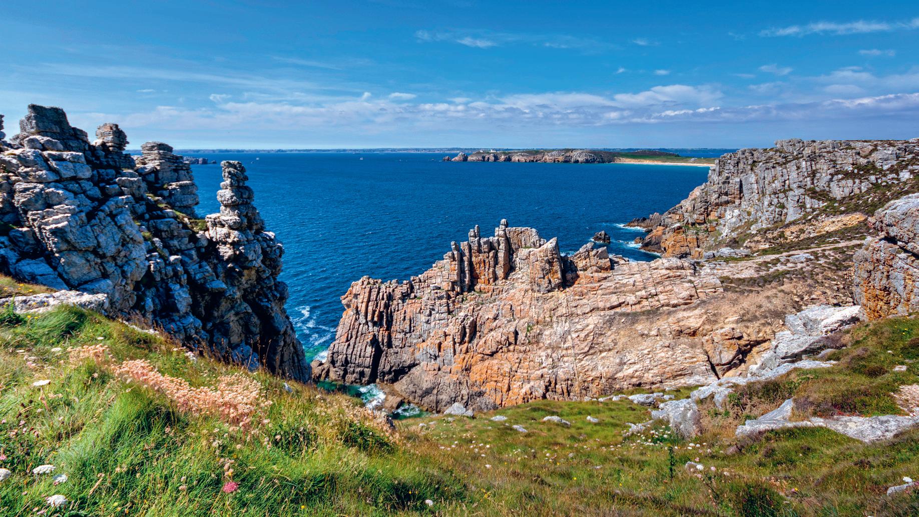 On repart de Pors Peron pour marcher de pointe en pointe – on en compte six sur l’itinéraire – à travers un littoral particulièrement découpé, délivrant de très belles vues sur la presqu’île de Crozon notamment.