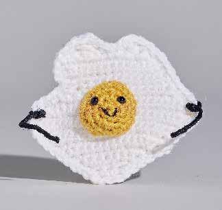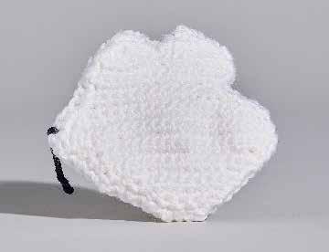 Tr 1 : crochetez à travers les deux épaisseurs. Commencez le long du côté opposé de la base, formez une boucle avec le fil blanc dans la ml à la base d’1 ms, 1 ml, ms espacées uniformément tout du long sur le bord extérieur du corps, en travaillant 2 ms dans chaque « pic » ; joindre avec 1 mc dans 1 ms.