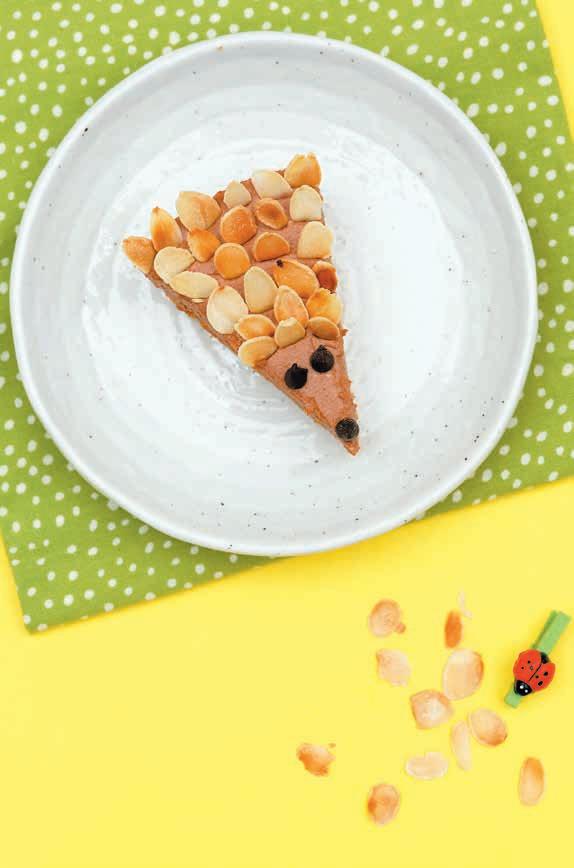Démoulez le cheesecake et coupez-le en 6 ou 8 parts. Piquez le dessus de chaque part d’amandes effilées en laissant la pointe triangulaire pour dessiner le visage. Positionnez les pépites de chocolat sur le triangle réservé pour former les yeux et le museau.
