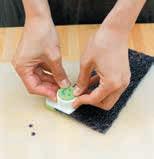 À l’aide d’une perforeuse, coupez des petits ronds dans la bande de nori. Placez-les sur les poissons pour figurer les yeux.