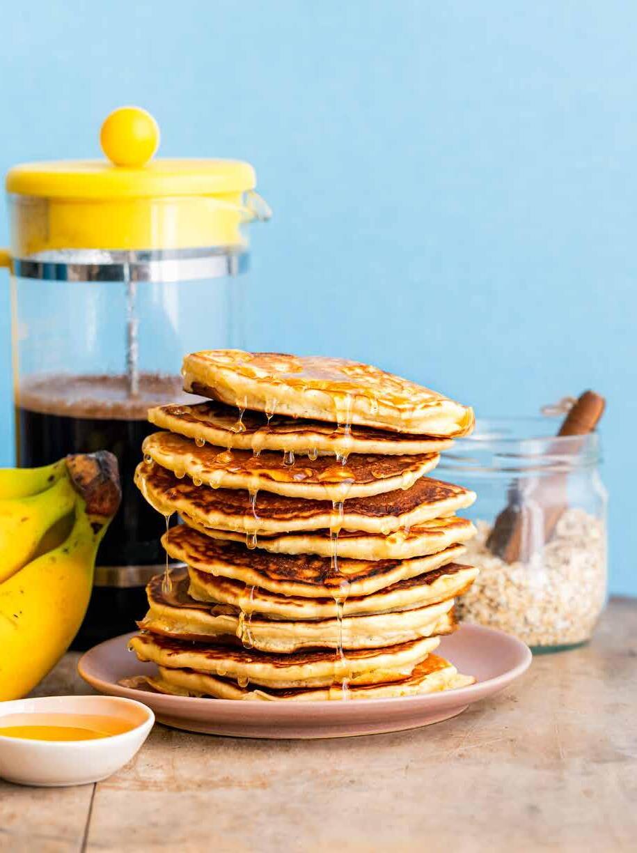 Préchauffez une poêle avec un peu d’huile, puis déposez une petite louche de pâte. Laissez cuire quelques minutes sur chaque face. De petites bulles doivent apparaître. Accompagnez vos pancakes de sirop d’érable.
