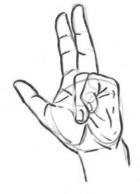 Lorsque les doigts se replient, des lignes apparaissent à l’intérieur de la main. La longueur des doigts semble se réduire à mesure qu’ils s’orientent vers nous.