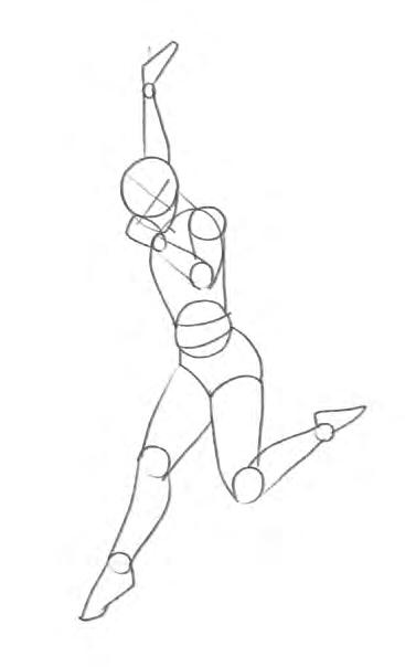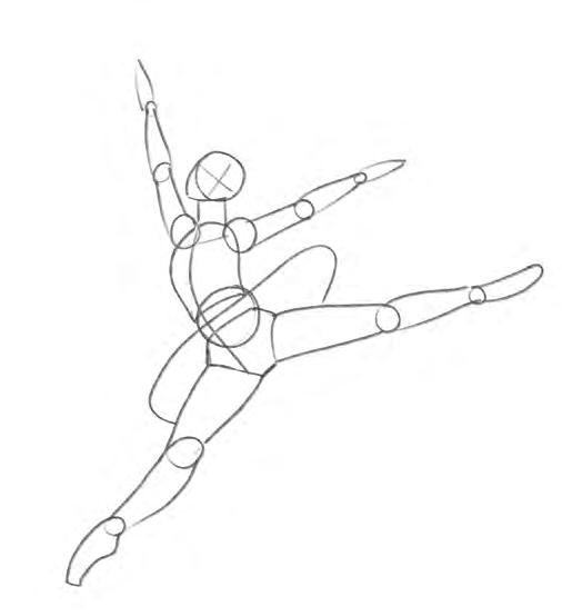 Continuez la construction du corps en respectant la symétrie : les épaules, les coudes, les poignets, les genoux et les chevilles doivent être alignés à la même hauteur et perpendiculaires à l’axe central.