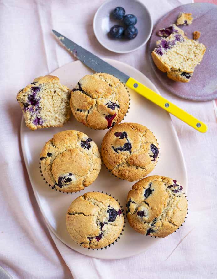 MUFFINS À LA FARINE DE MAÏS et aux myrtilles