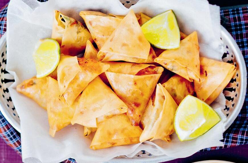 Réalisez une pâte à samossa traditionnelle ou utilisez une pâte prête à l’emploi, voir p. 34.