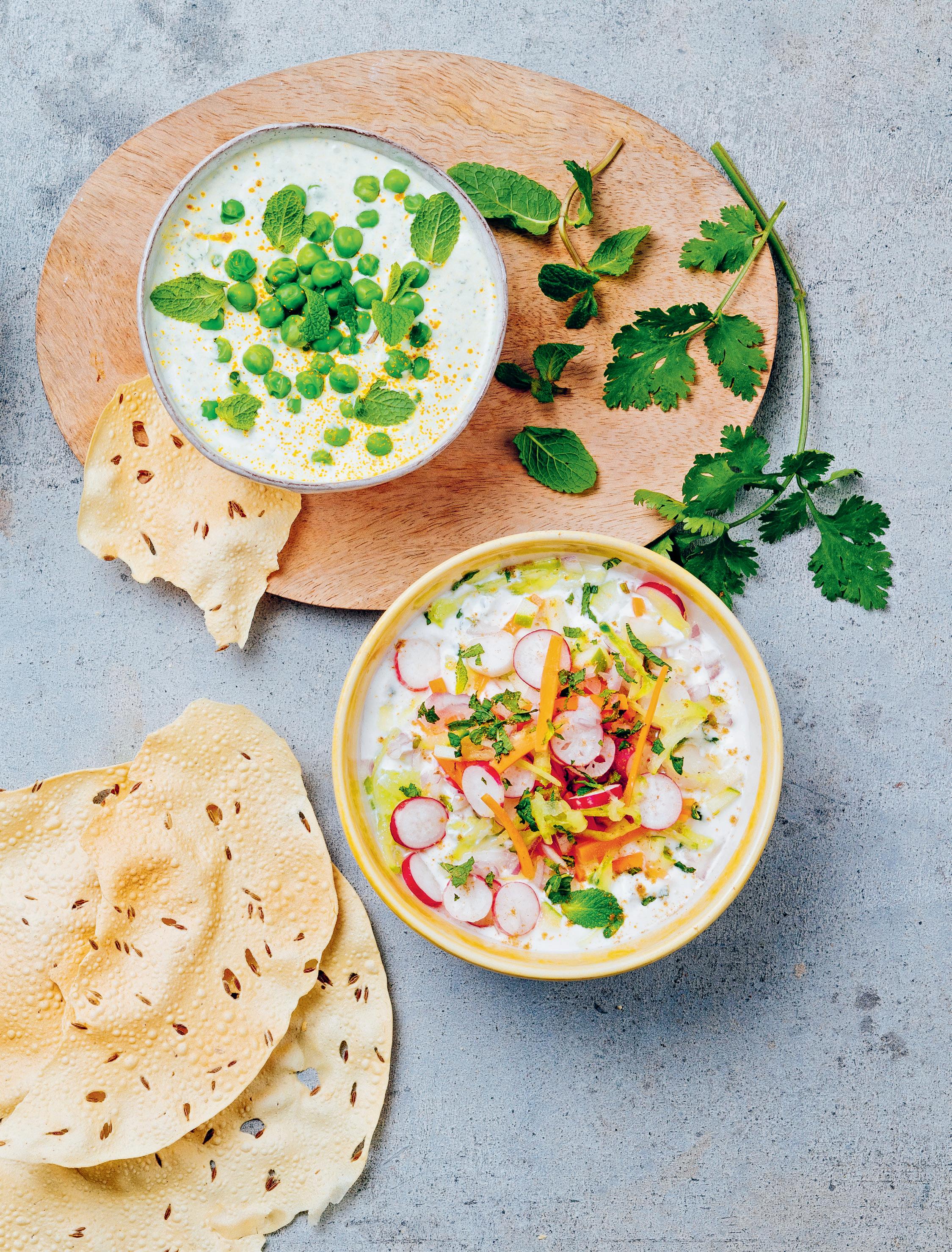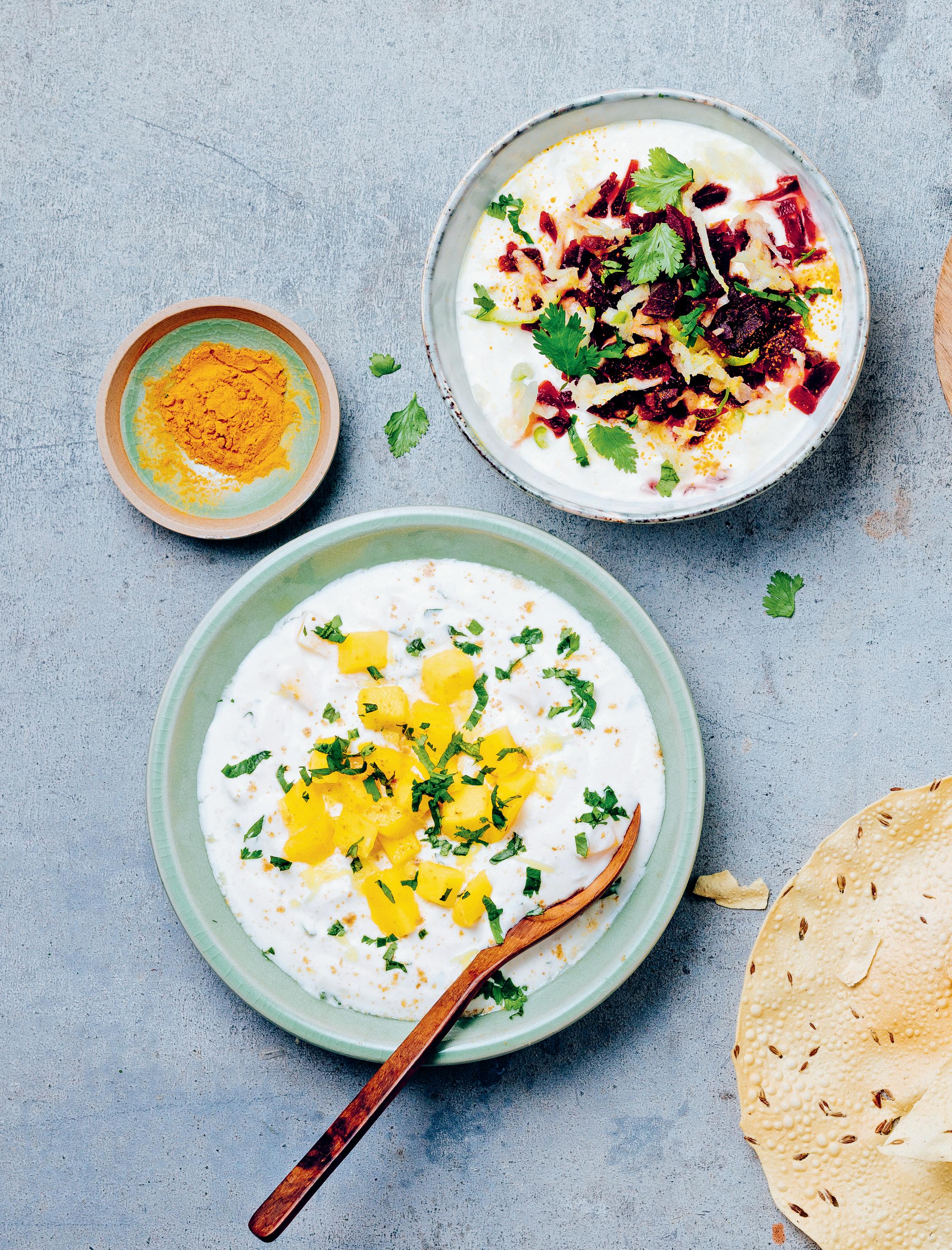 Élément indispensable de la cuisine indienne, le yaourt rafraîchit le palais et restaure la flore intestinale. On le trouve un peu partout, dans les plats et en accompagnement.
