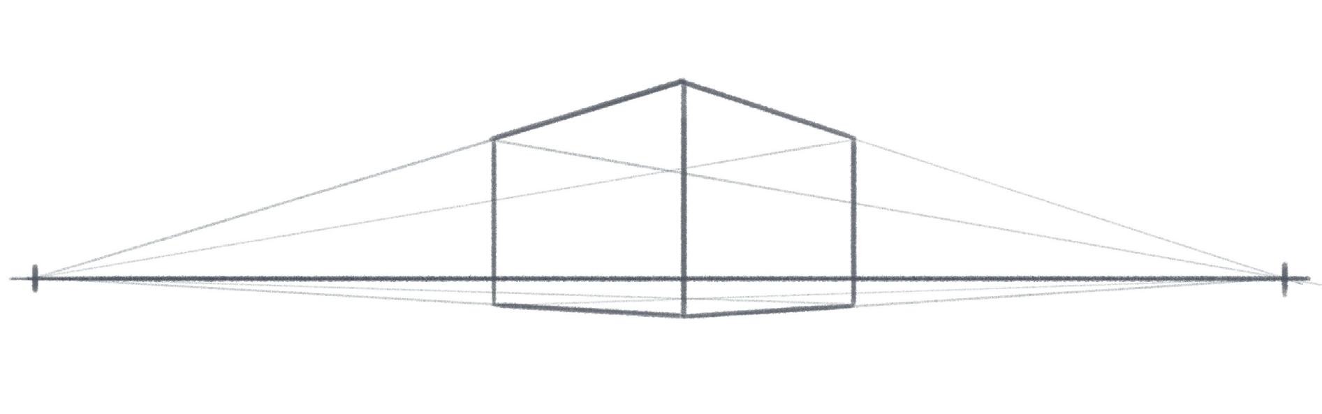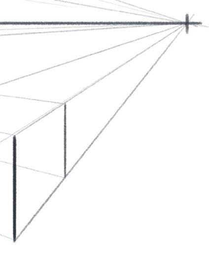 2. Tracez des lignes légères reliant A et B à 1 et 2. Ce sont les lignes de fuite.