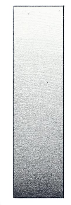 En n’utilisant qu’un seul crayon (ici du 8B), entraînez-vous à générer un dégradé propre et homogène, en partant du foncé le plus intense jusqu’à la disparition du dégradé dans le blanc pur. N’hésitez pas à superposer les couches et à foncer progressivement avec de grandes hachures. J’aime faire ce type d’exercice à temps perdu en regardant un film, par exemple.