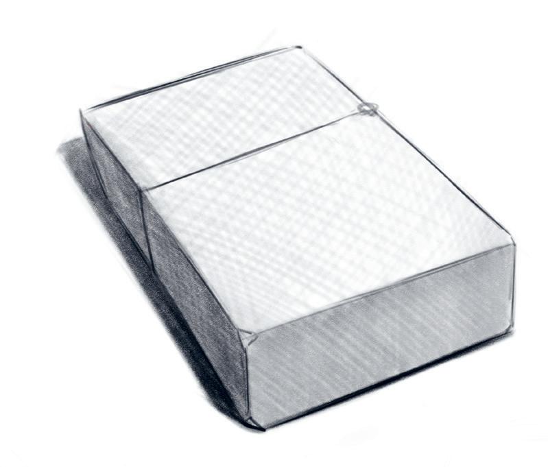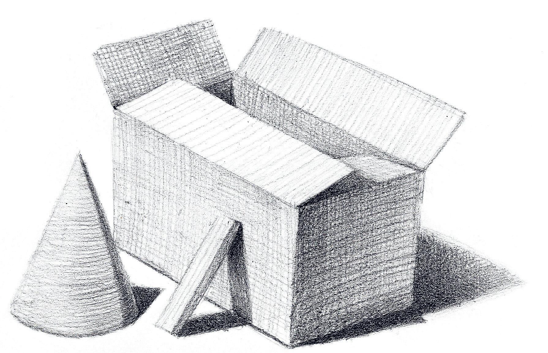 6. Redessinez avec plus de force les arêtes du volume qui sont visibles, et plus délicatement celles vues en transparence.