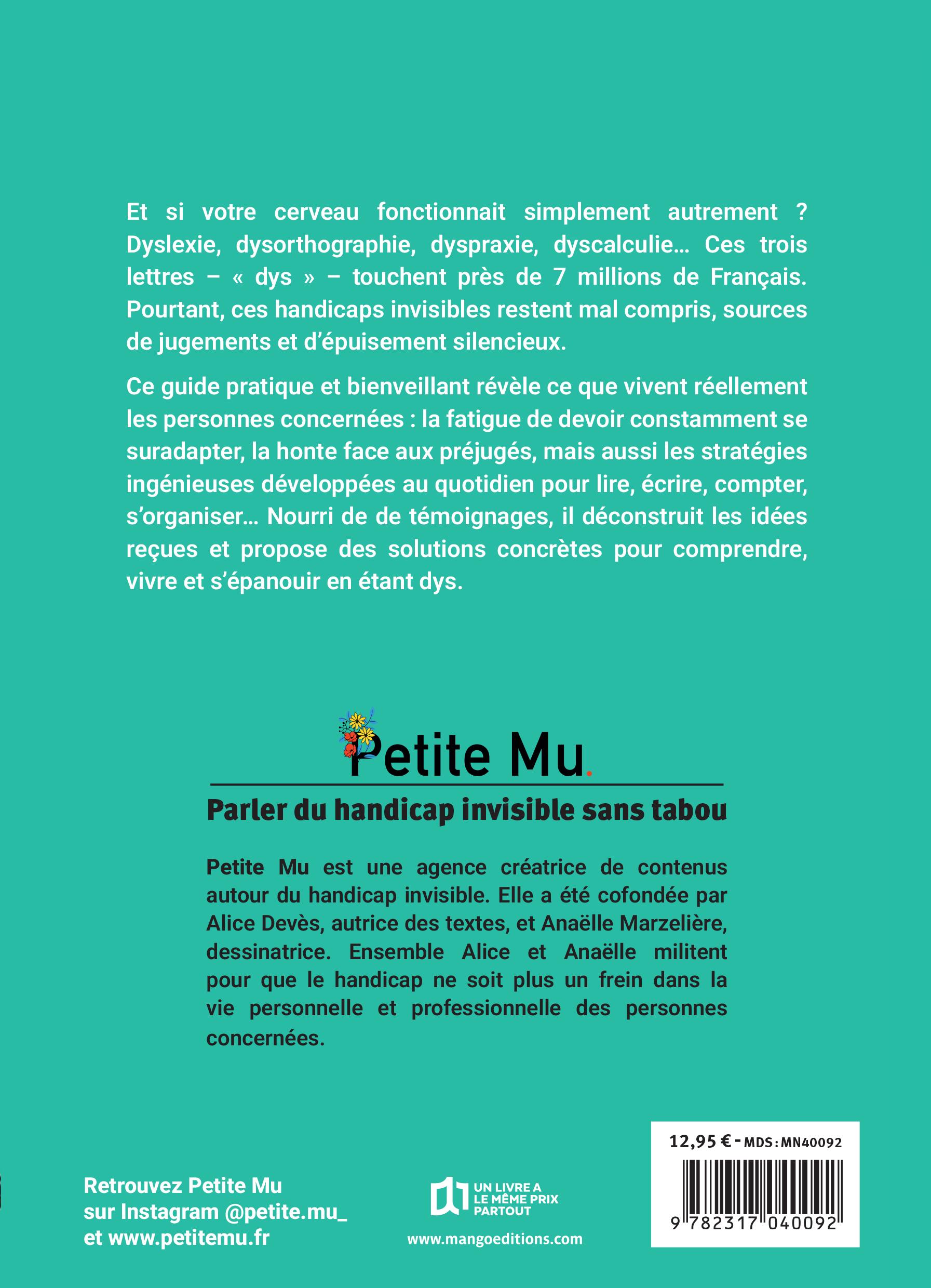 Nous partageons dans ces pages des solutions concrètes que nous avons recueillies sur le terrain, au fil de trois années d’échanges et d’interviews avec des personnes concernées par les dys. Ces témoignages nous ont permis de comprendre leurs besoins réels, d’identifier leurs stratégies d’adaptation et de valoriser les solutions qui fonctionnent vraiment au quotidien. Notre démarche n’est pas validiste. Cela signifie que nous ne considérons pas les personnes valides comme la norme et que nous refusons de penser le monde uniquement selon leurs repères, leurs rythmes et leurs besoins – en oubliant ceux des personnes en situation de handicap. Ici, nous faisons le choix inverse : écouter, inclure et coconstruire avec les personnes concernées. Chez Petite Mu, le premier média qui sensibilise aux handicaps invisibles, nous avons recueilli des dizaines de témoignages de personnes concernées. Toutes racontent la même chose : les dys ne se voient pas, mais ils façonnent le rapport au monde, aux autres et à soi-même.