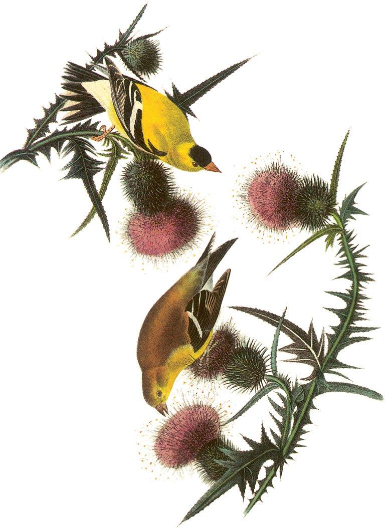 Symbole d’espoir, de célébration et de renaissance dans un grand nombre de cultures du monde entier, ce chardonneret est l’incarnation du charme, avec son plumage d’un jaune éclatant, les remarquables dessins qui ornent les plumes des mâles adultes et sa façon joyeuse de voleter d’arbre en arbre. La femelle est un peu moins vive avec sa teinte olive, mais elle est aussi très belle. Mâle et femelle partagent la domination au fil des saisons – une unité qui transparaît également dans les cris qu’ils émettent en vol : ils s’imitent l’un l’autre, ce qui permet aux autres membres de la volée de reconnaître les couples. La dimension grégaire est au centre de leur vie : un message aussi harmonieux que leur chant.