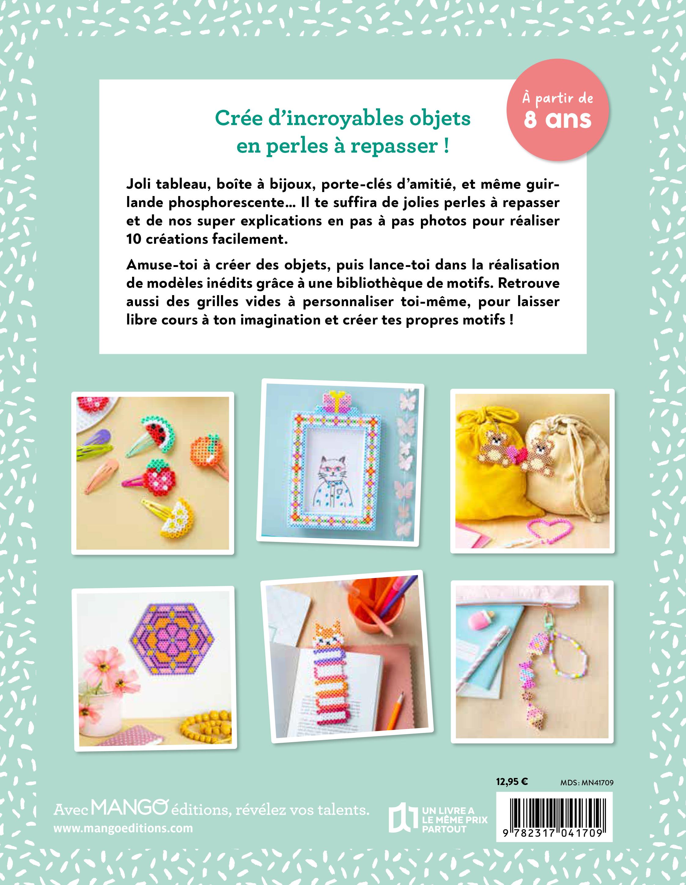Expliqués étape par étape, les 10 modèles de ce livre te permettront ensuite d’explorer les mille et une possibilités qu’offrent ces perles. Tableau, barrettes, boîte en forme de cœur, porte-clés ou encore guirlande à suspendre : il y en a pour tous les goûts !