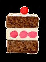 5 Les couleurs de la bûche seront l’ocre jaune dilué pour le biscuit, le rouge écarlate mélangé au rose permanent pour la confiture, et la terre d’ombre brûlée pour le chocolat autour. Pour les détails, utilisez un terre d’ombre brûlée plus concentré.