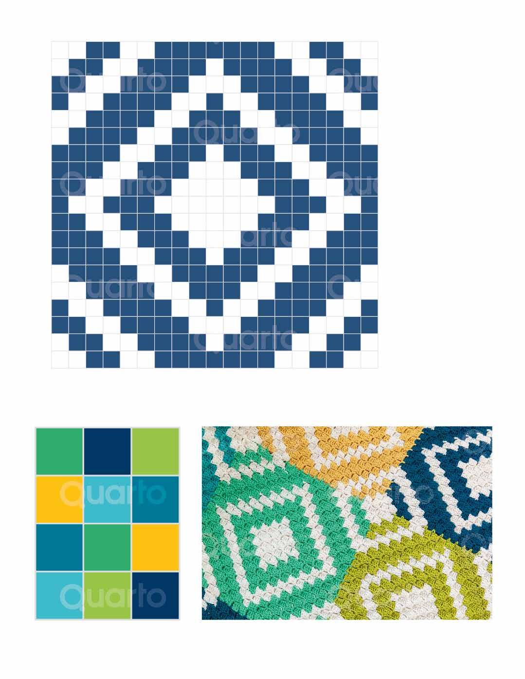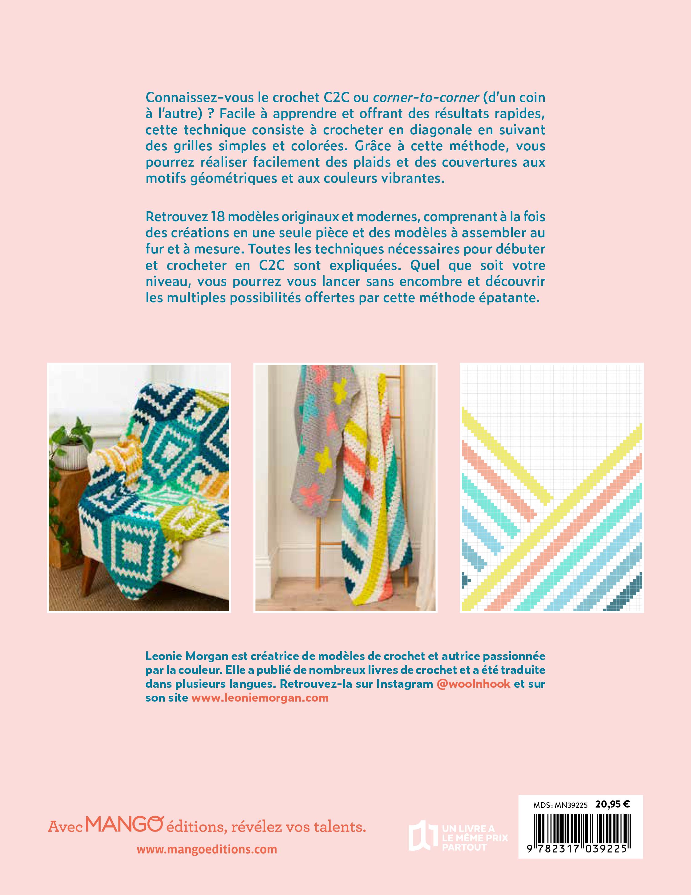 Le crochet C2C ( corner to corner , ou « d’un coin à l’autre ») se compose de blocs qui peuvent être formés de brides ou de demi-brides, sachant que dans ce livre nous n’utiliserons que des blocs de brides.