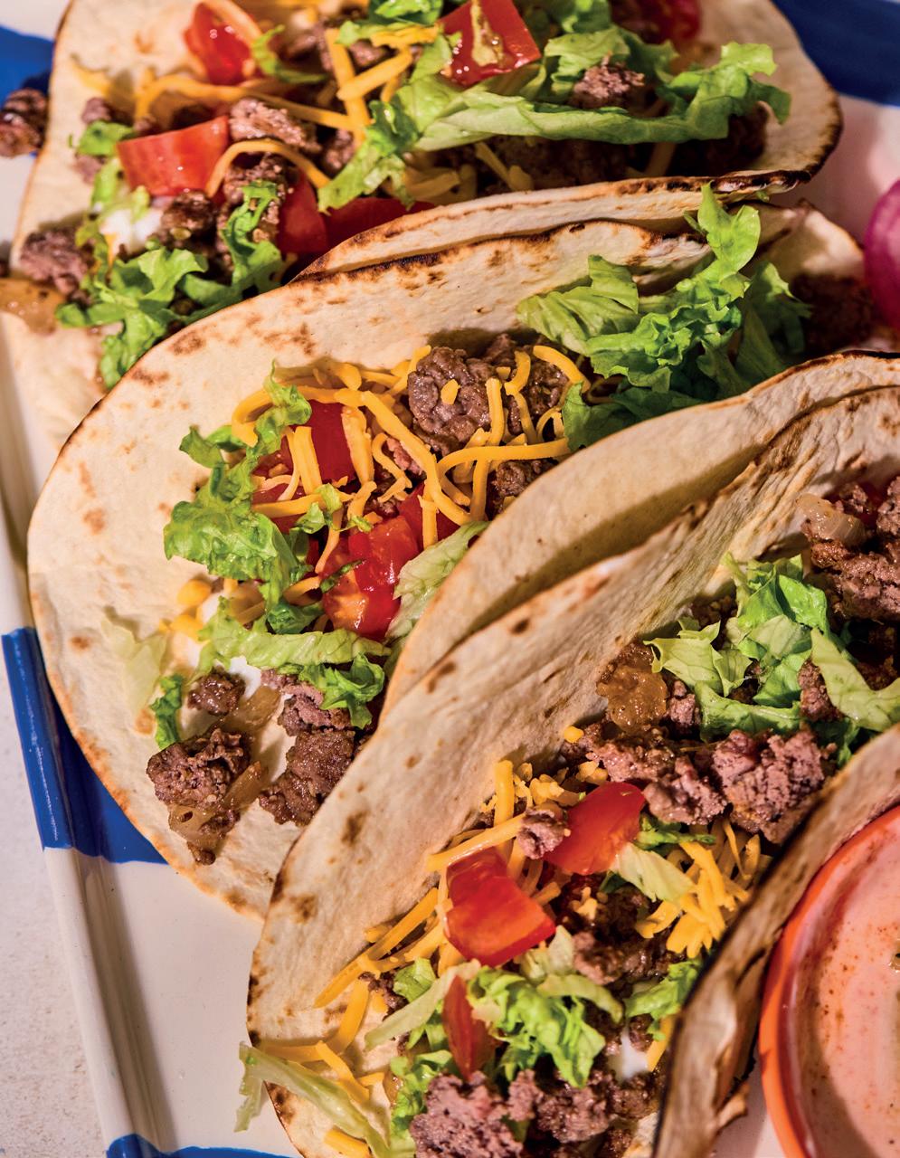 Garnissez chaque tortilla avec le bœuf épicé et les garnitures de votre choix.