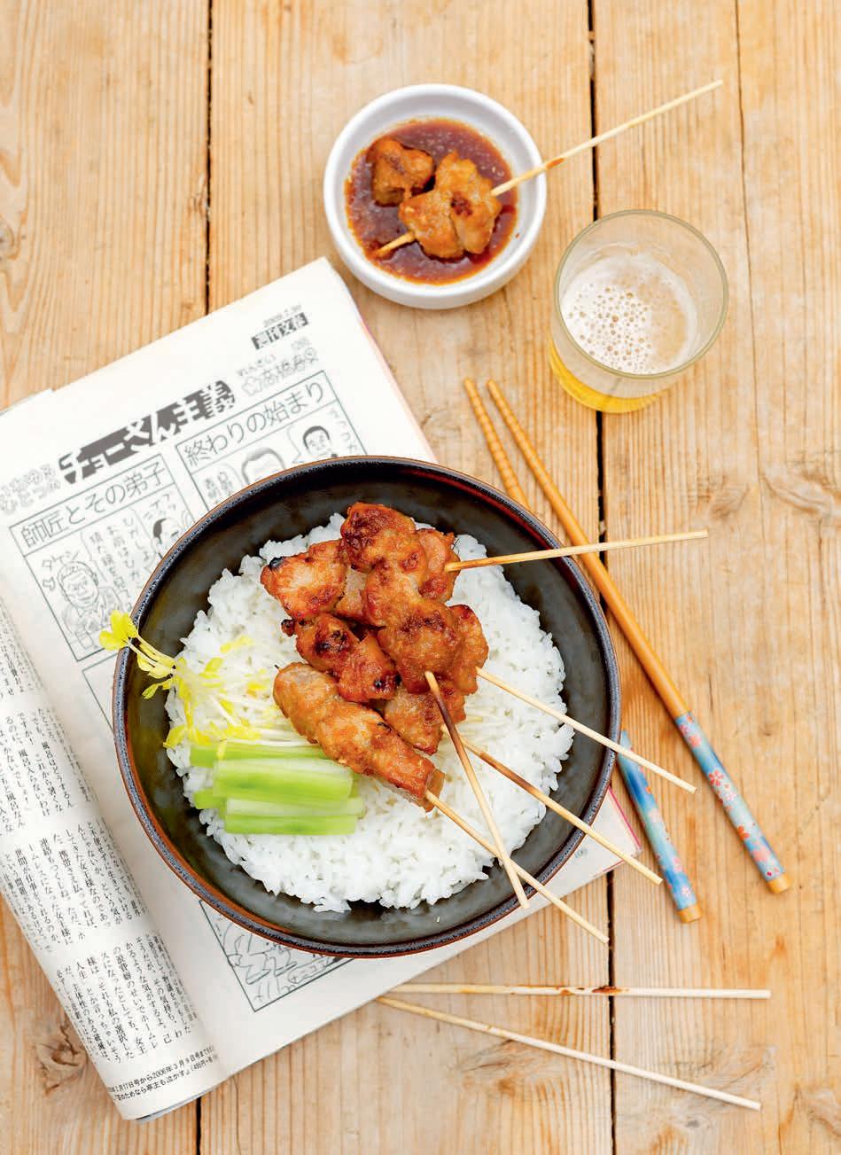 Les yakitori (littéralement « poulet grillé ») sont une véritable institution au Japon. Ce sont des petites brochettes savoureuses cuites au barbecue et trempées régulièrement dans une sauce, appelée logiquement « sauce yakitori », au cours de la cuisson.